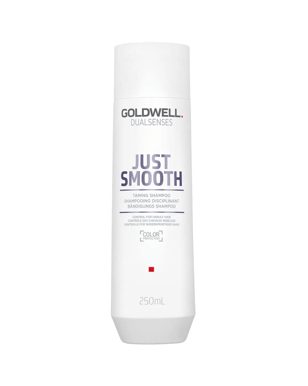 Goldwell Dualsenses Just Smooth Taming šampon formulisan je kako bi neposlušnoj kosi pružio trenutni efekat zaglađivanja i kontrole. Umiruje neposlušnu kosu i uklanja kovrčanje. Obogaćen je uljem kukuija koje zaglađuje površinu kose, dajući joj sjaj, elastičnost i olakšava češljanje. Ima vegansku formulu koja ne sadrži alkohol, parabene ni gluten. Namijenjen je za salonsku i kućnu upotrebu.
