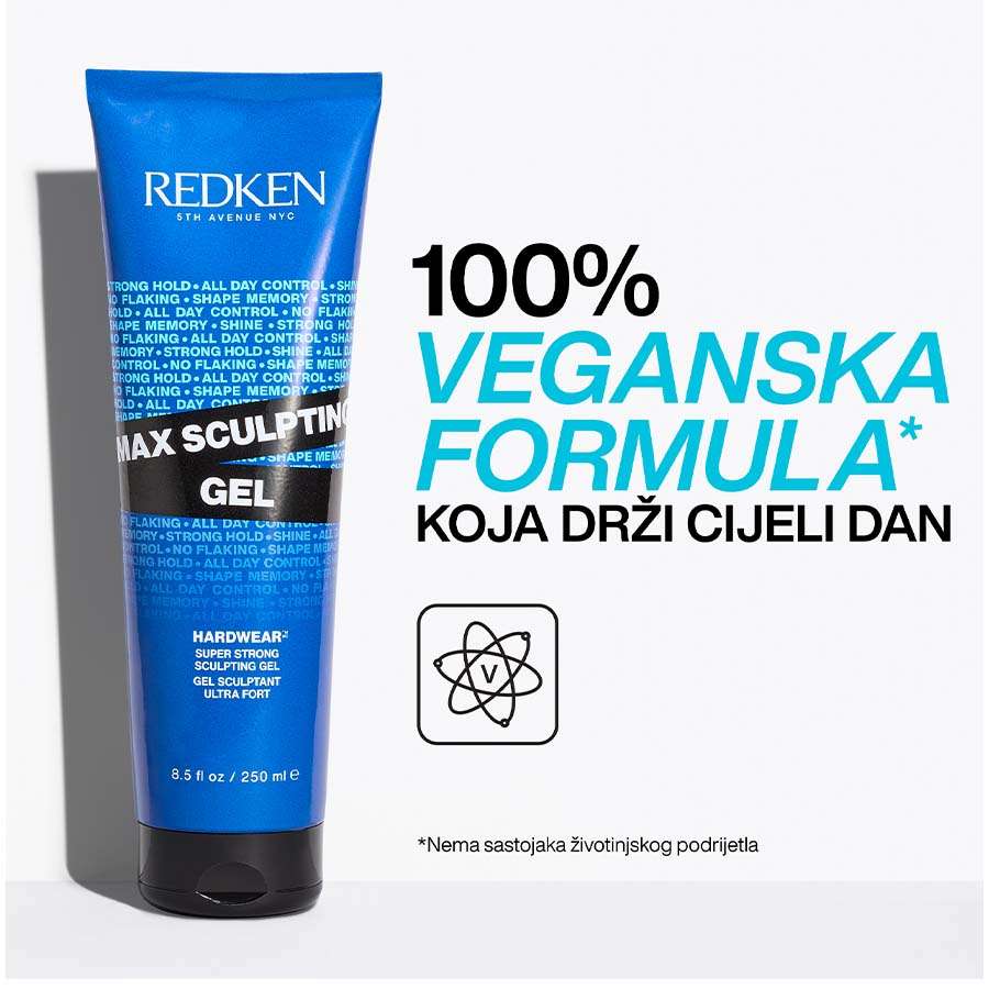 Redken Max Sculpting Gel pruža iznimno snažno učvršćivanje, dugotrajnu kontrolu i impresivan sjaj. Ovaj profesionalni gel za oblikovanje stvara efekt wet izgleda s lakiranim završetkom. Veganski je i sadrži hranjiva ulja ricinusa i kore naranče. Pruža gustoću i tijelo bez ostavljanja tragova, savršeno za kratku kosu i uglađen, izklesan izgled. Zahvaljujući dugotrajnom Shape Memory Effectu, kosa se lako oblikuje s svakim nanošenjem, čineći je lakšom za stiliziranje.