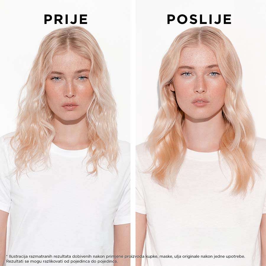 Nanesite odgovarajuću količinu šampona na mokru kosu. Nježnim pokretima napravite pjenu i temeljito isperite. U slučaju potrebe, postupak ponovite. Za optimalan rezultat, nastavite koristiti preparate za njegu kose iz iste kolekcije.